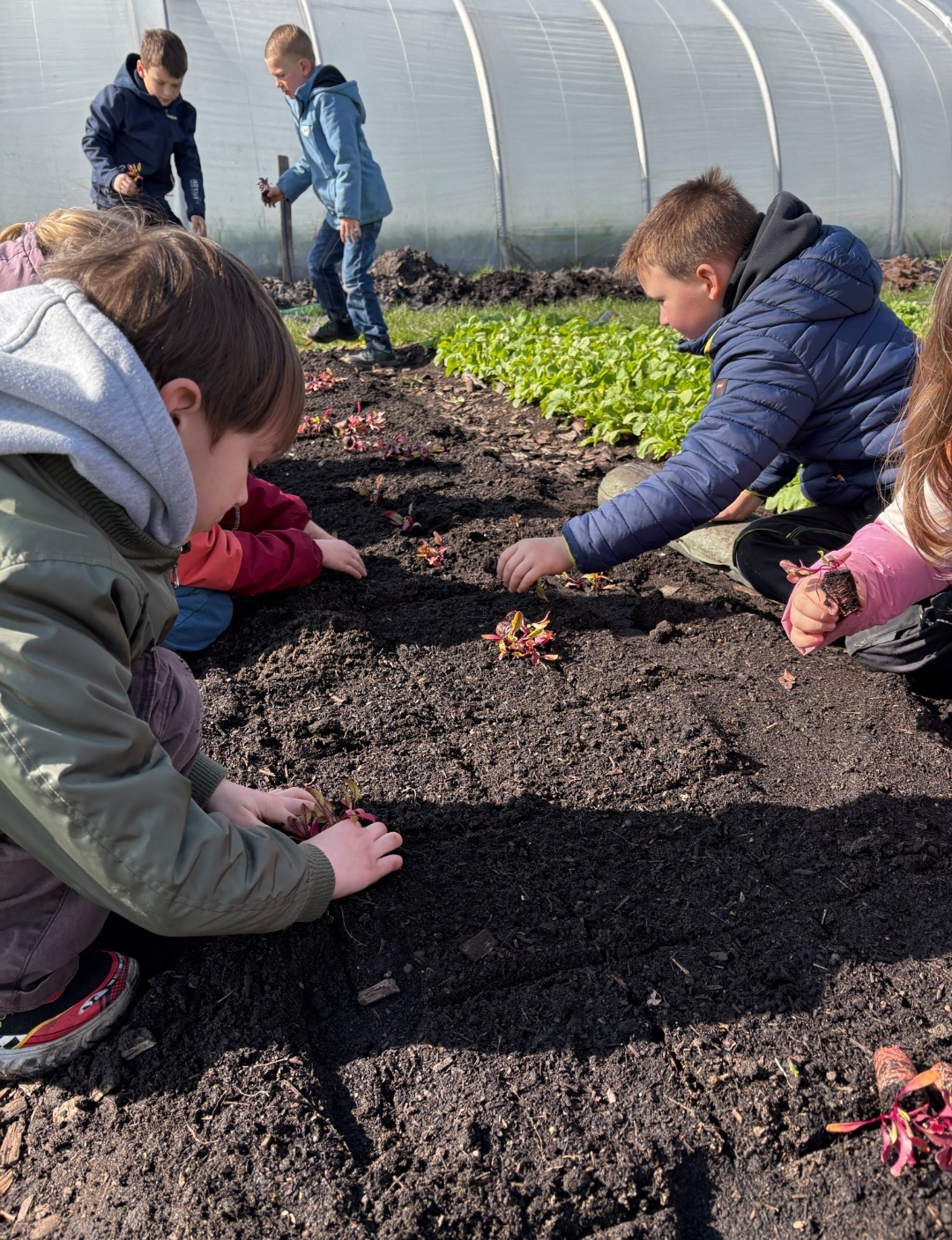Bei schönstem Sonnenschein durften wir Radieschen ernten, waschen und probieren. Danach haben wir noch rote Beete gepflanzt.